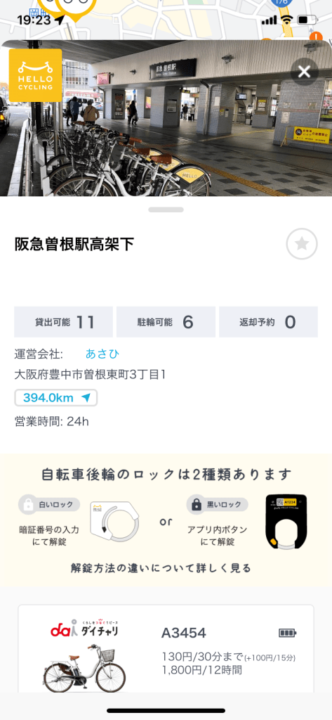 場所は阪急の曽根駅から自転車で10〜15分ほどかかります。歩くともう少し時間がかかりますので曽根駅前にあるシティーサイクルを使うのをお勧めします。気になる料金は最初の30分まで130円、それ以降は15分ごとに100円。1時間で330円とお得ですね♪タクシー呼ぶよりもお得です‼︎